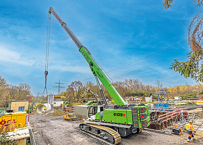 Für die Valet u. Ott GmbH & Co. KG lieferte Schlüter für Baumaschinen eine neue Sennebogen Elektromaschine nach Freiberg. Der 835 E für den tonnenweisen Schüttgutumschlag im Hafen könne nicht nur durch geringe Betriebskosten aufgrund des verbauten Elektroantriebs überzeugen, sondern habe vor allem durch sein spezielles Schienenfahrwerk begeistern können, welches auf Kundenwunsch hin extra auf die bereits im Hafen vorhandenen Schienen angepasst wurde.