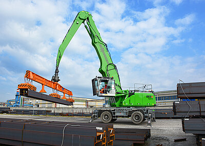 Der 835 E von Sennebogen ist bei der Valet u. Ott GmbH & Co. KG in Freiberg für die Be- und Entladung von Schiffen sowie den Materialumschlag inklusive LKW-Beladung zuständig. Aufgrund des verbauten, 200 kW starken Elektromotors könne der Umschlagbagger stets mit hoher Leistung in Kombination mit einem niedrigen Verbrauch arbeiten, was schnelle Arbeitszyklen bei der Be- und Entladung gewährleistet – und das geld- und umweltschonend. Seine widerstandsfähige Bauweise, bedingt durch besonders verschleißarme und langlebige Maschinenkomponenten, soll den 835 E zu einem echten Experten für den Dauerbetrieb machen und die Maschine vor längeren Ausfallzeiten schützen. Darüber hinaus ist der Elektrobagger nach Angaben von Sennebogen besonders wartungsfreundlich. Mit dem E-Serieneinbau hinten am Oberwagen wird ein einfacher und sicherer Zugang zu den Elektro-Komponenten gewährleistet. Eine rutschfeste Trittfläche schützt den Maschinisten zudem bei Wartungsarbeiten vor Unfällen.