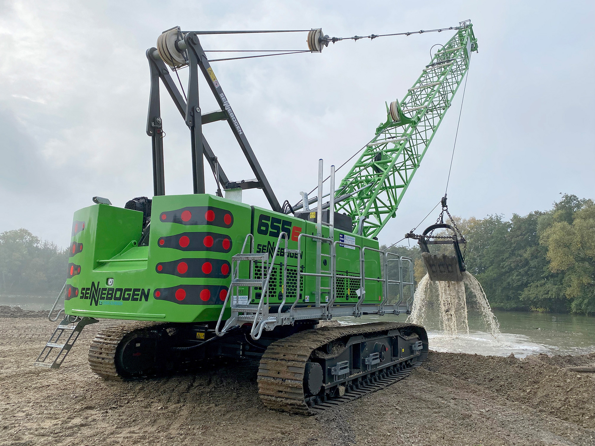 Das Fairlead und die im Ausleger integrierten Umlenkrollen sorgen, so Sennebogen, für eine optimale und schonende Seilführung, sodass eine langanhaltend sichere und koordinierte Steuerung des Seilbaggers und der Schleppschaufel gewährleistet ist. Das Ausbaggern des Sees könne somit mit höchster Präzision erfolgen: „Mit dieser Seilbaggertechnik ist der Aufwand für uns wesentlich geringer als beim Einsatz eines Saugbaggers, den wir herkömmlicherweise genutzt haben. Der Seilbagger arbeitet zuverlässig, benötigt beispielsweise auch keine Stromzuführung und dank der präzisen Arbeitsbewegungen kann ebenso die Kiesaufbereitungsanlage entfallen. So gut wie das jetzt läuft, werden wir für die Kiesgewinnung weiterhin auf Seilbagger setzen“, freut sich Geschäftsführer Mathias Schlotmann, den Blick auf zukünftige Projekte gerichtet.