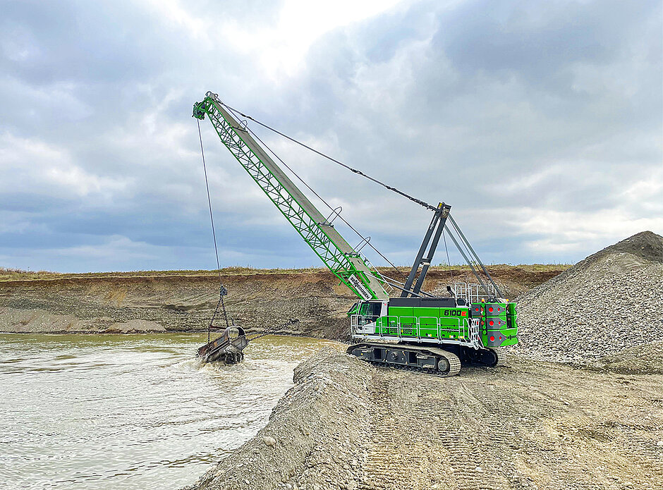 Mit den zwei 275 kN-Freifallwinden des leistungsstarken Seilbaggers kann die 3,4 m³ fassende Schleppschaufel, die mit zusätzlichen Zähnen ausgestattet ist, optimal betrieben und die Gewinnungsarbeit am Standort dauerhaft sichergestellt werden. Der neue Sennebogen Seilbagger 6100 HD sei so dimensioniert, dass die Effizienz der Produktion sogar noch gesteigert werden konnte. Das Fairlead sorge für eine ideale und schonende Seilführung, sodass eine langanhaltend sichere und koordinierte Steuerung des Seilbaggers und der Schleppschaufel gewährleistet sei. Ein umweltschonender Motor, der den aktuellsten europäischen Emissionsrichtlinien der Stufe V entspricht, reduziert währenddessen die Emissionen vor Ort.