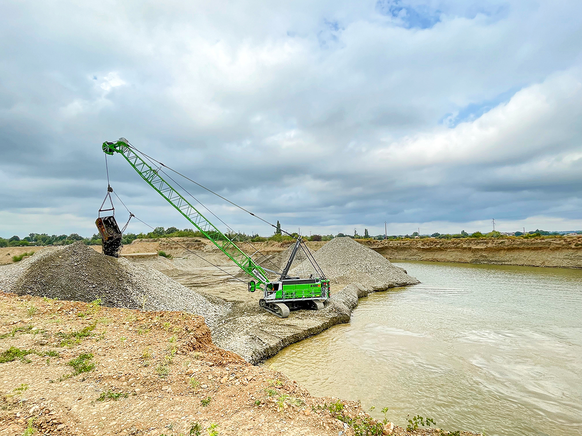 Vor drei Jahren hatte sich Denjean Granulats für den Sennebogen 6140HD mit 140 t Traglast entschieden, um den Betrieb seiner Anlage in Saverdun in der Ariège zu sichern. Nun bewies das französische Unternehmen erneut sein Vertrauen in die Marke Sennebogen und entschied sich mit dem Erwerb des 6100 HD für einen weiteren Seilbagger des Herstellers. Sygmat, der exklusive Sennebogen Vertriebs- und Servicepartner in Frankreich, lieferte den 100 Tonner vor wenigen Wochen aus und nahm ihn sogleich in Betrieb. Ausgestattet mit einer 3,4 m³ fassenden Schleppschaufel, sichert der neue Seilbagger von nun an die Kiesproduktion für den Denjean-Konzern in Saint-Elix-Le-Château.