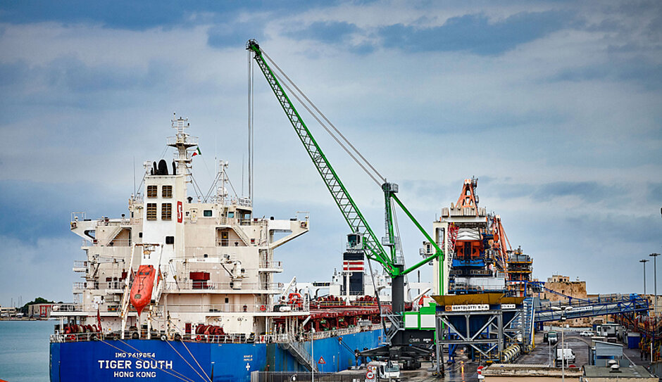 Dank der großzügigen Auslegerlänge wird der Kran bei Schiffen bis zur Panamax-Klasse für den Umschlag von diversen Schüttgütern verwendet und kommt bei Feeder-Schiffen im Containerhandling zum Einsatz. In Brindisi stellte der Kran in den ersten Wochen nach der Lieferung seine hohe Umschlagleistung im Schüttgutbereich unter Beweis.