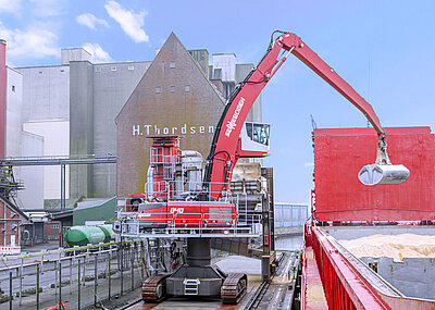 Holzlogistik mit mobiler Umschlagmaschine SENNEBOGEN 730 E-Serie