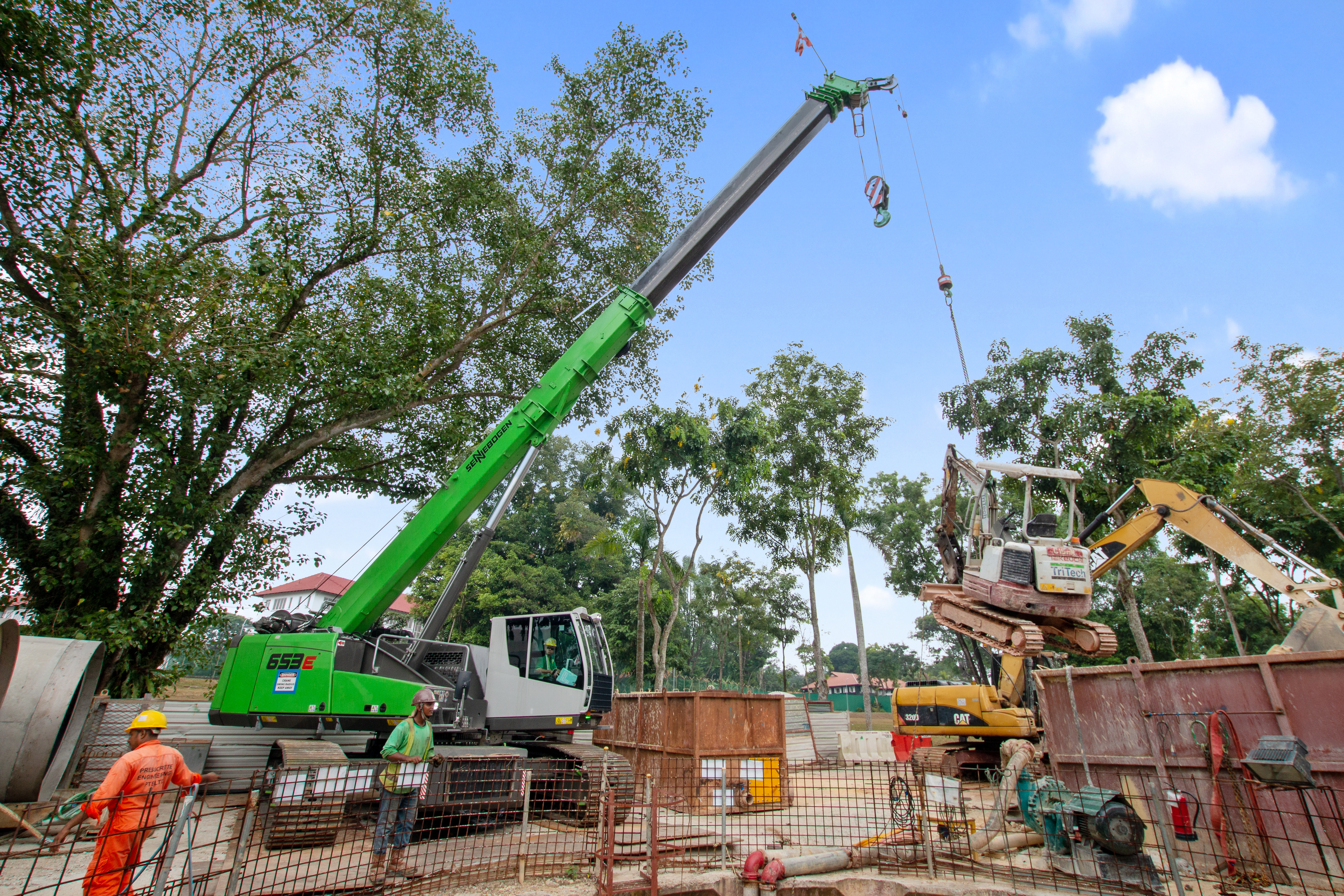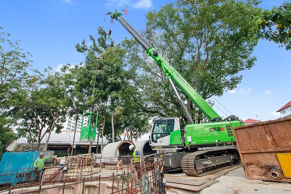 Als Presscrete Engineering Pte Ltd den Auftrag für die Wartung des Deep Tunnel Sewerage System (DTSS) in Singapur bekam, war das Unternehmen schnell überzeugt, dass der Teleskopkran SENNEBOGEN 653 E die perfekte Maschine für diesen Einsatz ist.