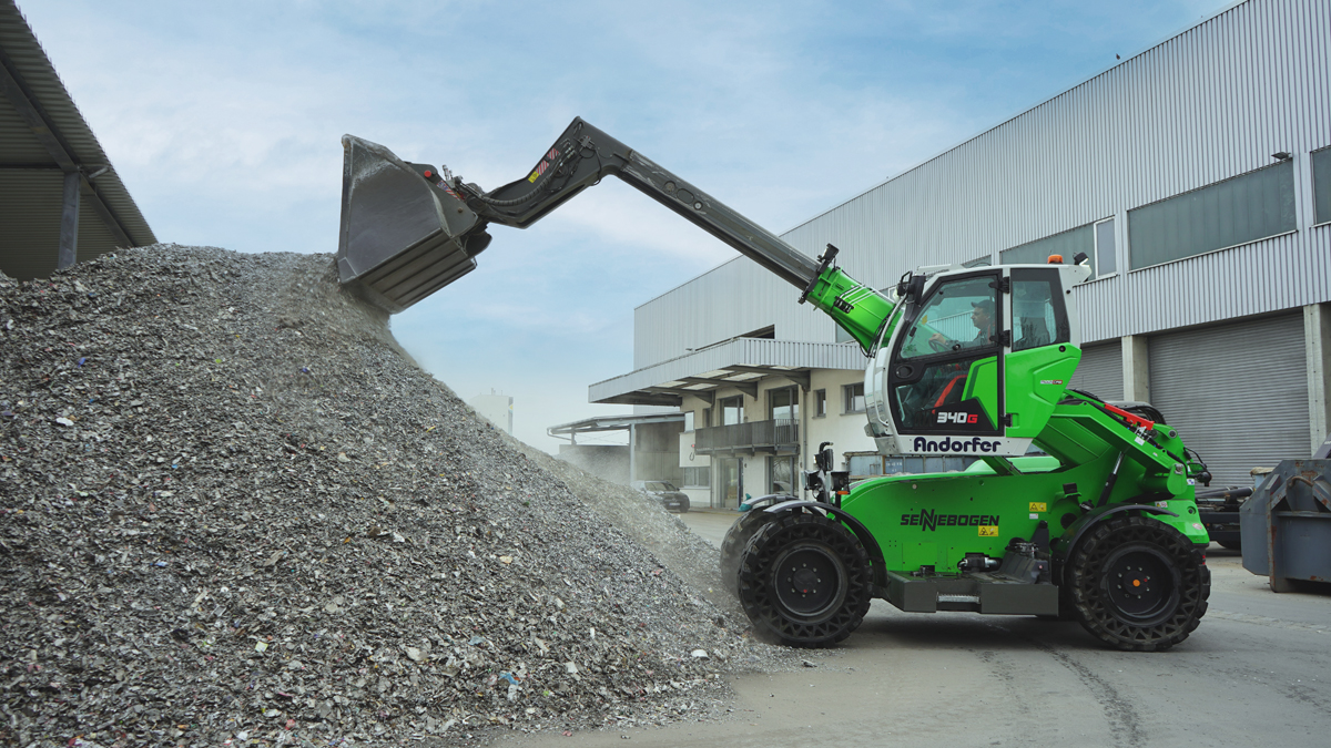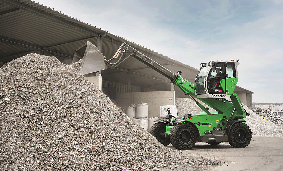 Der 340 G ist seit einem Jahr bei Andorfer im Einsatz. Betreut wird das Unternehmen dabei durch die Sennebogen Vertriebsgesellschaft. Mit seinem großen Dieseltank ist er ständig in Bewegung und gewährleistet so einen ununterbrochenen Betrieb Mit rund 250 Einsatztagen im Jahr und zwei Schichten von jeweils etwa acht Stunden.