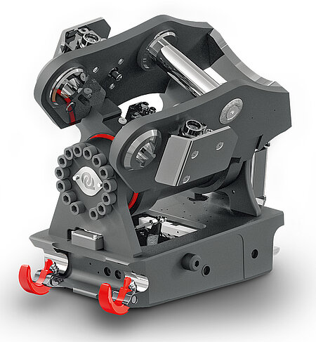 Ein hydraulisches Schnellwechslersystem, das die Flexibilität des Baggers signifikant erhöhen soll, findet sich außerdem bei Rädlinger: Mit seiner HS-Serie kann der Hersteller Schnellwechsellösungen für Bagger aus der 0,7-t- bis 40-t-Klasse aufbieten. Im Bereich von 5 bis 12 t steht das Modell HS 08 im Mittelpunkt: Zwei Aufnahmeklauen und Riegelbolzen, welche in einem Adapterrahmen am Anbaugerät greifen, ermöglichen das sichere und schnelle Aufnehmen sowie Verriegeln von der Fahrerkabine aus. Punkten kann der Schnellwechsler HS 08 mit einem kompakten Aufbau sowie mechanisch bearbeiteten Anlageflächen. Kompatibel mit Systemen von Lehnhoff, soll der Rädlinger-Schnellwechsler aber auch im Bereich sicherer Handhabung punkten: Eine Sichtanzeige zur Überprüfung des verriegelten Zustands ist ebenso enthalten wie ein starrer Auffanghaken. Zielsetzung bei der Entwicklung war es, ein System anzubieten, dass hohe Flexibilität auf der Baustelle bietet, dem Fahrer Zeit- und Arbeitsaufwand erspart und sichere Abläufe ermöglicht.