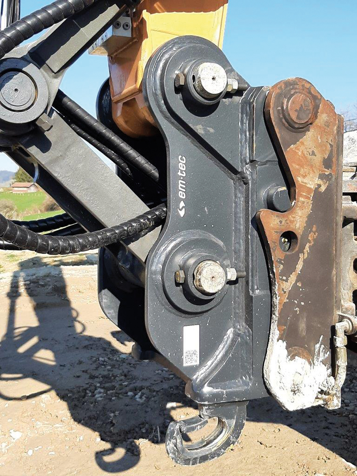 Von »entspannten Baggerstunden« spricht wiederum emtec, wenn es um dessen neuen vollhydraulischen Schnellwechsler eQ45-5 geht: Ausgestattet mit einem neuen Sicherheitssystem, soll das Modell für Trägergeräte bis 12 t das unbeabsichtigte Verlieren von Anbaugeräten verhindern. Durch die integrierte Bauweise der Sicherung, so der Hersteller, gebe es keine störenden Konturen, welche den gewohnten Kupplungsprozess zwischen Bagger und Anbaugerät beeinträchtigen. Die Sicherheitseinrichtung stellt gleichzeitig eine Verriegelungsanzeige des Schnellwechslers dar. Somit kann sich der Bediener auf nur eine Anzeige konzentrieren, was zu einer erheblichen Erleichterung im ständigen Wechsel von Anbaugeräten führen soll. Neben der optischen Sicherheitserkennung hebt emtec außerdem die Robustheit des Systems hervor und spricht zudem von einem um 10 % verringertem Rückstaudruck. Ausgestattet ist der eQ45-5 zudem mit gehärteten Wellen, hochfestem Stahl sowie einer einfachen Hydraulikführung.