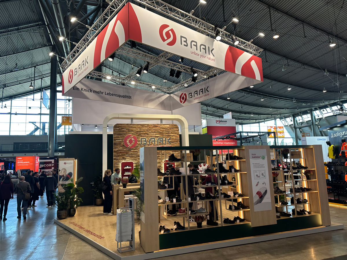 Unter dem Motto »ein Knick mehr Lebensqualität« schuf Baak auf der Messe nicht nur einen Raum für Fachinformationen, sondern auch für Austausch und Wohlbefinden. Die Besucher konnten verschiedene Schuhe direkt ausprobieren, an einem Gewinnspiel teilnehmen oder sich bei Brezeln und Weißwürsten stärken. »Es war schön zu sehen, wie unsere Produkte und unser Ansatz – Sicherheit mit Lebensqualität zu verbinden – so positiv aufgenommen wurden«, sagt Johannes Ernst, seit April Head of Sales & Marketing bei Baak. »Die direkten Gespräche mit den Menschen, die auf verschiedene Weise mit uns interagieren und kooperieren sowie mit jenen, die unsere Schuhe tagtäglich tragen, geben uns wichtige Impulse für die Weiterentwicklung.«