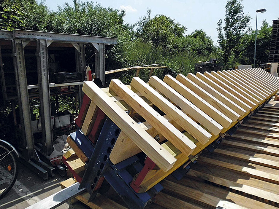 Die Sonderbehandlung der Schalemente setzte sich dann auf der Baustelle fort, wo das wertvolle Schalmaterial ausschließlich stehend gelagert wurde. Riedel-Bauleiter Bernd Böttcher zeigt sich sehr zufrieden mit den von Harsco bereitgestellten Schallösungen: »Sichtbeton-Baustellen dieser Art sind stets eine echte Herausforderung. Da hilft es sehr, wenn man mit kompetenten Schalungsplanern zusammenarbeitet, die ihr Handwerk verstehen und wissen, worauf es ankommt.«