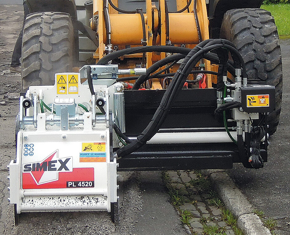 Eine der wichtigsten Vorgaben bei Fräsarbeiten auf der Straße – saubere Kanten – wollen die Simex-Fräsen durch ein spezielles System garantieren. Die Fräsen der Serie PL nivellieren sich automatisch und ermöglichen so eine konstante und präzise Frästiefe sowie einen sauberen Kantenschnitt. Mit derNivellierautomatik und der manuell regulierbaren Fräsentiefeinstellung werden plane Flächen erreicht. Dabei werden nicht nur Unebenheiten des Oberbelages, sondern auch solche zwischen nebeneinander liegenden Frässpuren ausgeglichen. Mit dem Simex-eigenen Querneigungssystem sieht der Anbieter gerade und konstante Fräsergebnisse auch bei schräg stehender Trägermaschine als gesichert.