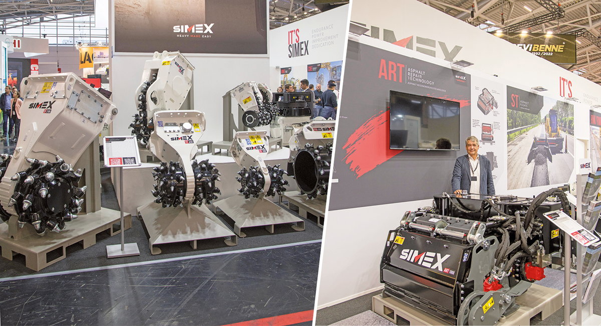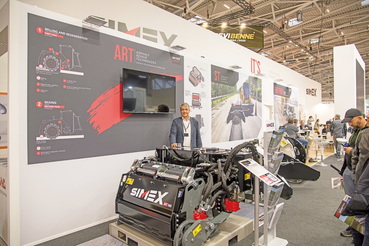 Der italienische Anbaufräsenspezialist Simex hat auf der Bauma seine Technologie Simex Art vorgestellt, die für die Regeneration von bituminösem Mischgut entwickelt wurde und 100 % des Materials vor Ort wiederverwendet, ohne dass Fräsgut entfernt oder andere Materialien hinzugefügt werden müssen. »Das zeigt wieder einmal, über welch’ großes Know-how Simex verfügt«, erklärte Uwe Basler, der mit seiner Firma Industrial Consulting den Vertrieb des italienischen Unternehmens in Deutschland und in Österreich verantwortet, im Gespräch mit dem bauMAGAZIN.
