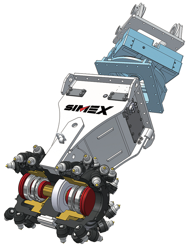 Weil der gesamte Antrieb im hydraulischen Antriebsöl läuft, ist keine Schmierung von Getriebeeinheiten notwendig. Die Fräsköpfe bezeichnet Simex in dieser Hinsicht als wartungsfrei.