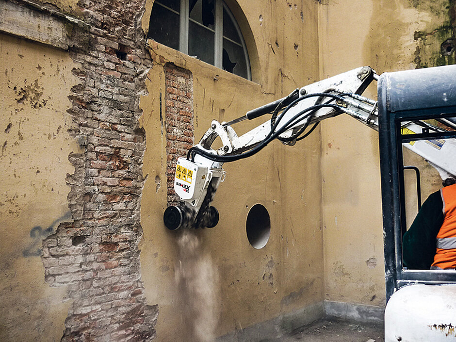 Weil der Abbruch hauptsächlich aus Arbeiten im Innenbereich besteht, setzt Simex auf kleine leichte Fräsen, die von Minibaggern ab 1 t betrieben werden können. Zwei Ausführungen stehen zur Verfügung.