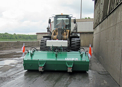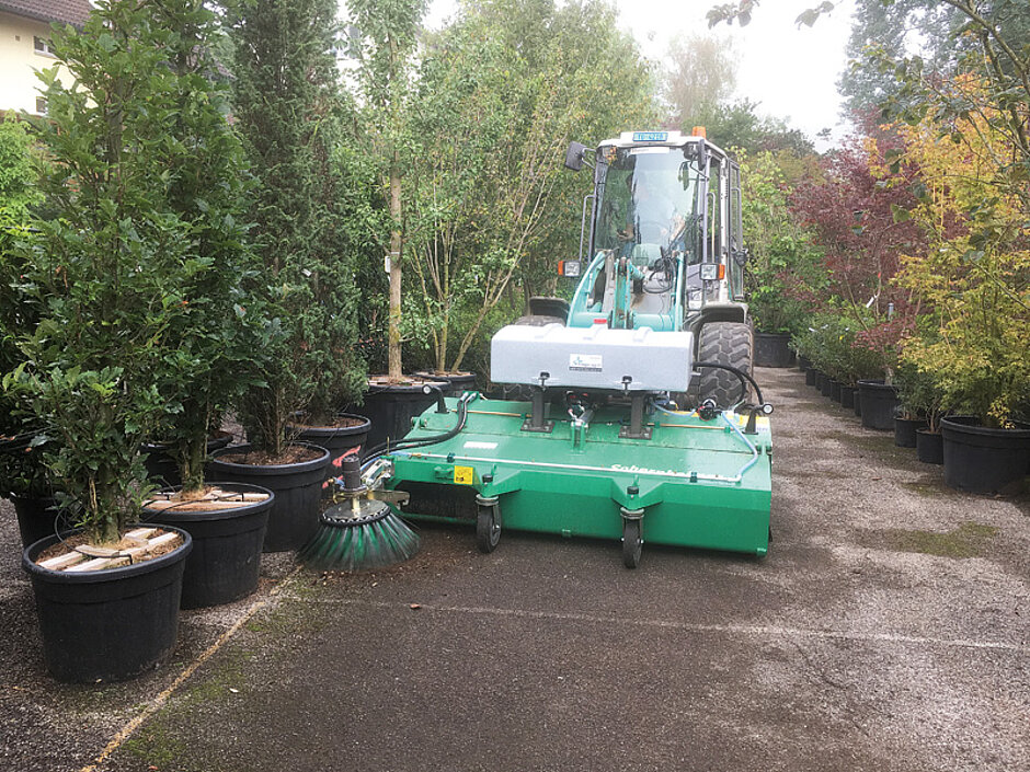 Bei Bedarf kann die Universalkehrmaschine ohne große Umrüstungsarbeiten zum Freikehren eingesetzt werden. Dazu wird der Schmutzsammelbehälter hydraulisch geöffnet und die Maschine mechanisch oder hydraulisch zur Seite geschwenkt.