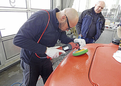 Für die Innenreinigung und -pflege verwendet Grenzland Baugeräte den »Sonax-Auto-Innenreiniger« oder – wenn es um die Auffrischung der Kunststoffe geht – auch die »Cockpitpflege«. Metallteile mit kleineren Beschädigungen oder auch nach der Entfernung von Flugrost werden zum Schutz mit dem »Professional-Zink-Alu-Spray« behandelt. Auf dem Metall bilde, so der Anbieter, das schnelltrocknende Spray aufgrund seines hohen Zinkanteils einen erstklassigen und dauerhaften Korrosionsschutz. Die abriebfeste, mattsilberne Schutzschicht lasse sich bei Bedarf sogar überlackieren.