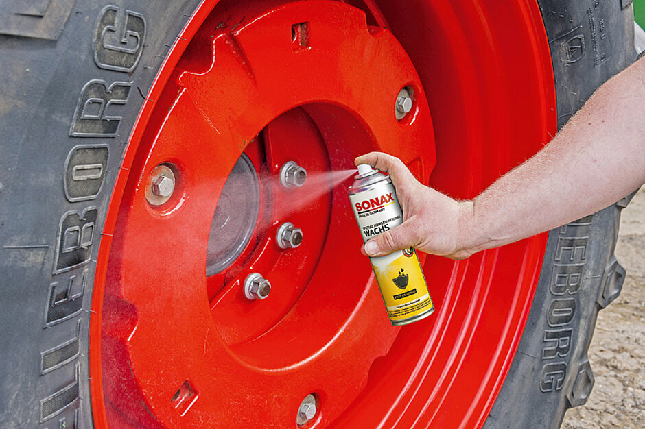 Mit dem Agrar-Gerätereiniger von Sonax werden schädliche Salzanhaftungen bereits nach kurzer Einwirkzeit mittels Hochdruckreiniger entfernt. Bei Minustemperaturen sollten die Maschinen draußen allerdings nicht gereinigt werden.