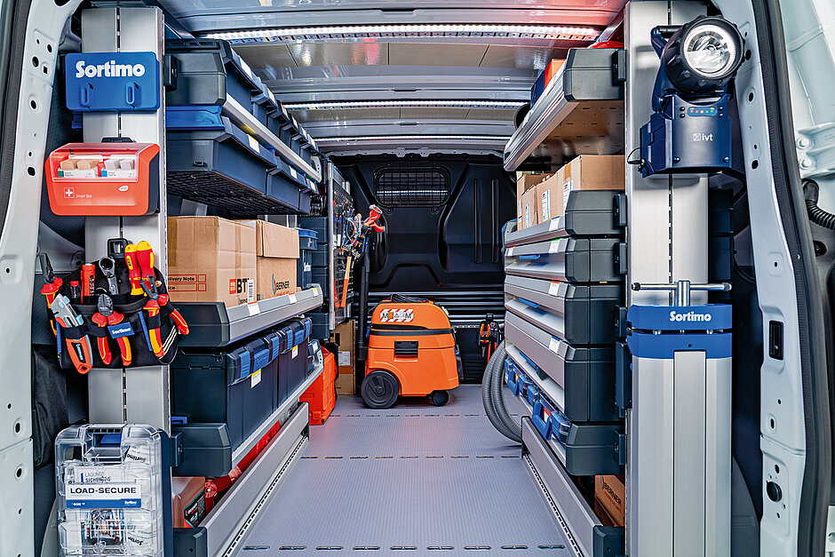 Der modulare Aufbau ist nicht nur praktisch, sondern auch ökologisch sinnvoll: Die Regalinhalte lassen sich beim Fahrzeugwechsel einfach mitnehmen, das Basissystem verbleibt im Fahrzeug und kann neu genutzt werden. Damit verlängert sich der Lebenszyklus der Ausstattung und der Ressourcenverbrauch sinkt.j