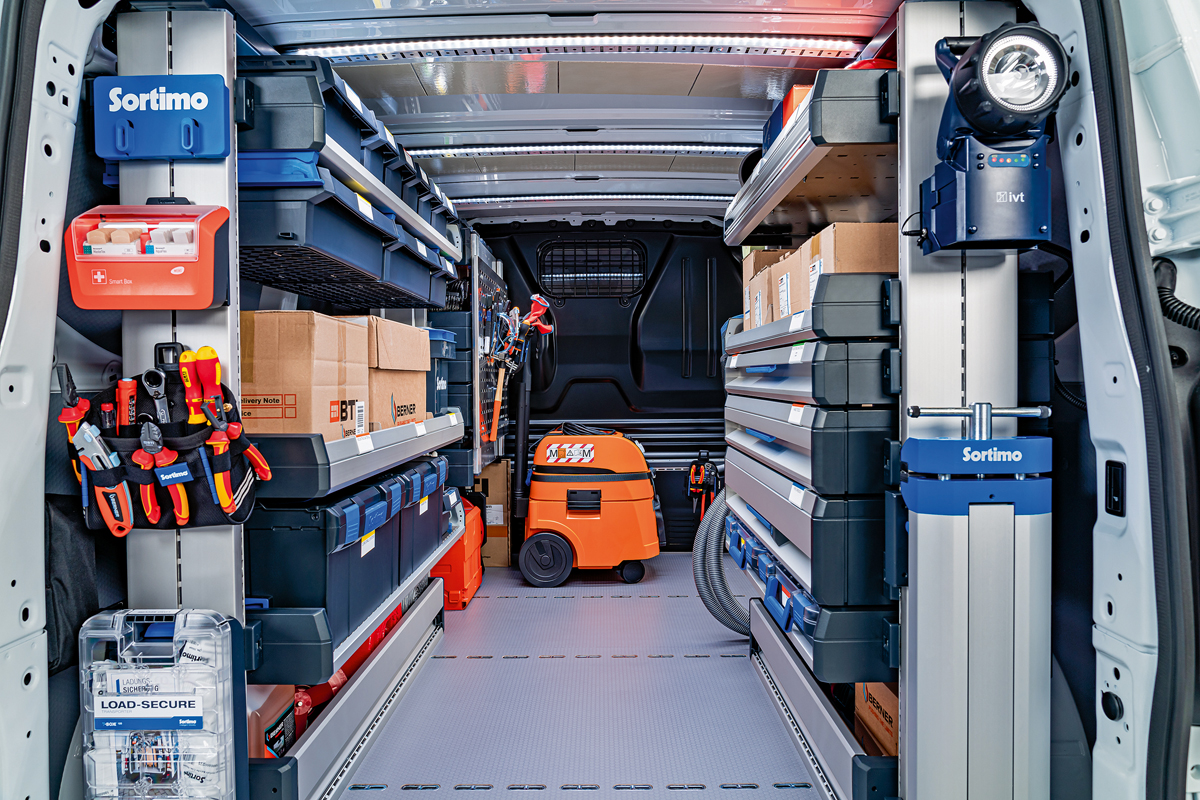 Mit einem Klick zum optimalen mobilen Arbeitsplatz: Das soll das »One Click«-System ermöglichen. Das Herzstück der Lösung bildet das werkseitig installierte Basissystem im Fahrzeug. Die modularen Regalinhalte lassen sich per »One Click«-Mechanismus werkzeuglos ein- und ausbauen, ganz nach individuellem Bedarf und ohne Fachkenntnisse. Die Idee dahinter ist ein flexibles, wiederverwendbares System, das sich im Handumdrehen an wechselnde Einsatzzwecke und Nutzende anpassen lässt. Besonders für Flottenkunden bietet das System einen entscheidenden Vorteil: Fahrzeuge können mit einem standardisierten Grundausbau ausgestattet werden, den die Nutzer individuell ergänzen oder umbauen. Auch gebrauchte Fahrzeuge lassen sich im Handumdrehen neu konfigurieren, was Ausfallzeiten minimiert und die Rentabilität steigert.