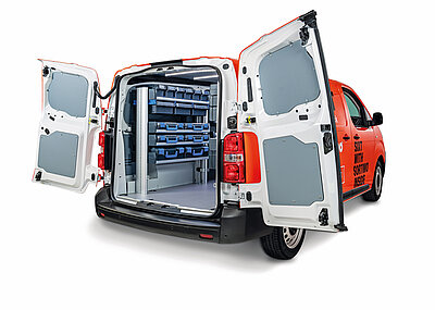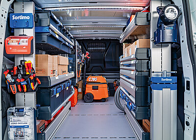 Wird die Jumbo-Unit als Unterflurlösung genutzt, kann diese durch einen Sortimo-Boden abgedeckt und so flexibel mit einer Fahrzeugeinrichtung oder WorkMo im Laderaum kombiniert werden. Bei der »Stand Alone«-Version besteht die Möglichkeit, die Großraumschublade mit einer Abdeckwanne oder einer Abdeckplatte auszustatten. Für noch mehr Stauraum lassen sich die Jumbo-Units auch übereinander montieren. Auch das Zubehörprogramm – wie Abdeckwannen, Deckplatten und Werkzeugmatten – hat Sortimo an die neuen Breiten und Tiefen angepasst. t
