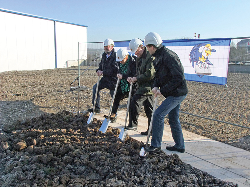 Die fortschreitende Internationalisierung des Unternehmens – schon jetzt beträgt der Exportanteil über 50 % – machen den zusätzlichen Platz notwendig, um die Firmenabläufe noch effektiver und mitarbeiterfreundlicher zu gestalten. Das Investitionsvolumen für den Bau und die Ausrüstung der Halle beträgt rund 5,7 Mio. Euro. Im Neubau entsteht eine zentrale Logistikdrehscheibe mit großzügigem Versandbereich und mehreren Lkw-Docking-Stationen. Zusätzlich besteht die Möglichkeit, Lkw direkt in der Halle mit einem 15-t-Kran von oben oder auch quer zu beladen. In der 10 m hohen Halle mit einer 1 500 m² großen Lagerfläche für Paletten entsteht neben den Büros und Sozialräumen auch ein Endmontagebereich. Zudem kommen moderne Lagerlifte mit einer Gewichtskapazität von 60 t zum Einsatz, in denen Komponenten und Kleinteile platzsparend und staubfrei systemgestützt gelagert werden. Die bestehende Montageabteilung für Verlegemaschinen im bereits vorhandenen Untergeschoss wird entsprechend angebunden und integriert.