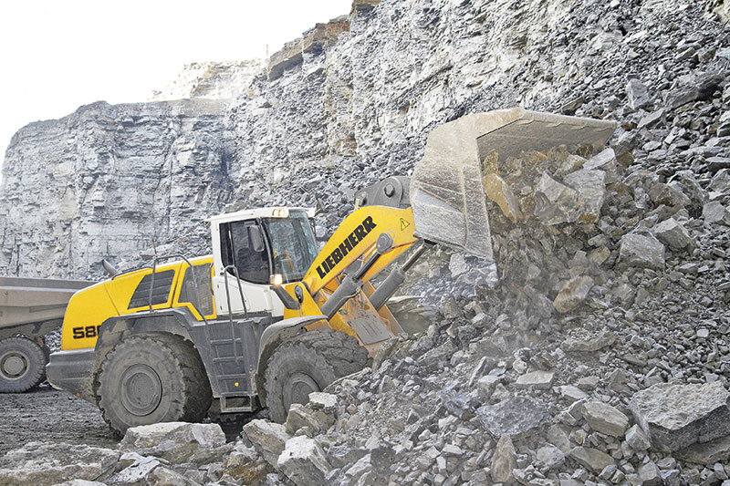 Liebherr zeigt auf der Steinexpo einen Radlader L 580 sowie einen L 586, der auf dem Demogelände im Einsatz zu sehen ist. Der L 586 gilt als größter hydrostatisch betriebener Radlader der Welt. Die Maschine ist mit einer 5,5-m³-Felsschaufel und Reifenschutzketten ausgestattet und wird auf dem Demogelände im Steinbruch zu sehen sein. Der L 586 bringt in Standardausführung 31 380 kg auf die Waage und erreicht eine Kipplast von 20 430 kg. Mit einem 6-Zylinder-Dieselmotor verfügt er über eine Motorleistung von 250 kW (340 PS). Eine automatische Zentralschmieranlage gehört zur Standardausstattung, die gezeigte Maschine ist zudem mit einer Joysticklenkung ausgestattet.