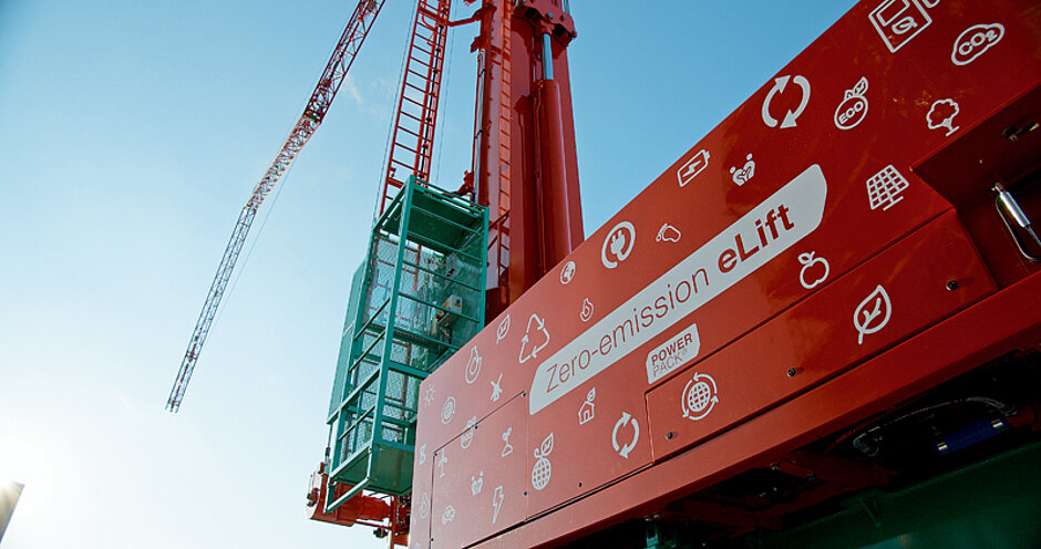 Über einen integrierten Akku können Verbrauchspitzen ausgeglichen werden. Sobald der Kran auch nur wenige Sekunden nicht betrieben wird, schalten die Hydraulikpumpen ab und reduzieren somit den Energieverbrauch unmittelbar. Dabei wird der integrierte Akku weiter aufgeladen, sodass grundsätzlich nur ein Netzanschluss für geringen Verbrauch erforderlich wird. Falls kein Netzanschluss auf der Baustelle verfügbar ist, kann der Kran auch per Hybridmodus arbeiten, dann versorgt ein kleiner 3-Zylinder-Dieselmotor der EU-Stufe 5 zusammen mit dem Batterie-Powerpack den Kran mit erforderlicher Leistung.