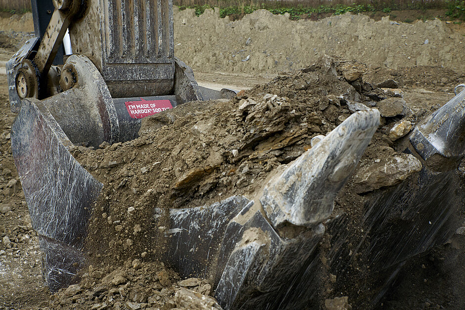 Alternativ zur Standzeiterhöhung des Anbaugerätes könne durch den Einsatz von Hardox 500 Tuf eine gezielte Verringerung der Materialstärken vorgenommen werden, wie auch Uwe Rehor als Leiter der Konstruktion und Entwicklung bei Resch-Ka-Tec betont. »Die nochmals verbesserten mechanischen Materialeigenschaften ermöglichen es, leichtere und auch größere Grabgefäße zu konstruieren. Das verringerte Eigengewicht des Anbaugeräts erhöht die Umschlagleistung pro Ladespiel und kommt der Standzeit der Baumaschine insgesamt zugute«, so Rehor.