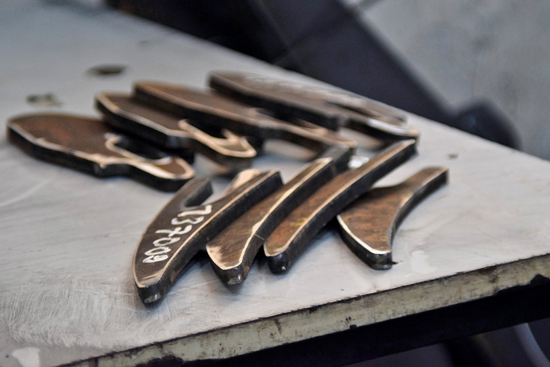 Die neue Reißzahnfamilie ist gegenüber der Vorgängerkonstruktionen um bis zu 25 % leichter. Den Kern bildet, je nach Leistungsgröße, ein 30 mm dickes Hardox-450-Blech in Verbindung mit einem 10 mm dicken Hardox-500-Tuf-Blech. Diese werden gleich in die Reißzahnendform zugeschnitten. In der Basisausführung werden gegebenenfalls seitlich links und rechts schlankere Bleche als zusätzlicher Verschleißschutz aufgebracht und angeschweißt.