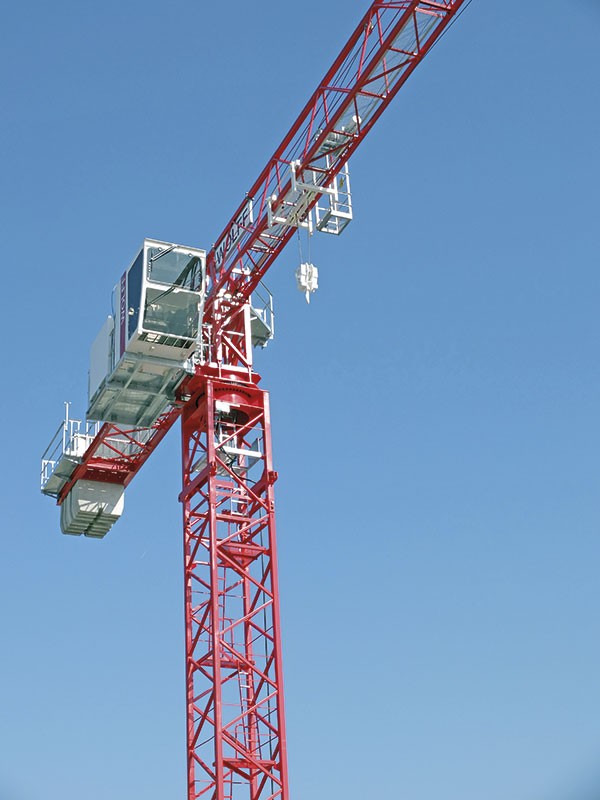 Auf innerstädtischen Baustellen sind kompakte Krane gefragt, die zugleich leistungsstark und effizient zu montieren sind. Die Heilbronner Ingenieure richteten ihre neuste Entwicklung nach diesem Trend aus und erweitern mit dem spitzenlosen Wolff 5014 city ihre Produktpalette kleiner Laufkatzkrane. Der Neuzugang soll sich nicht nur durch eine Spitzentragfähigkeit von 1,4 t bei 50 m Ausladung auszeichnen, sondern insbesondere durch die maximale Traglast von 6 t. Der reine 2-Strang-Kran vollbringe damit, so betont der Hersteller, eine Bestleistung im Vergleich zum Wettbewerb.