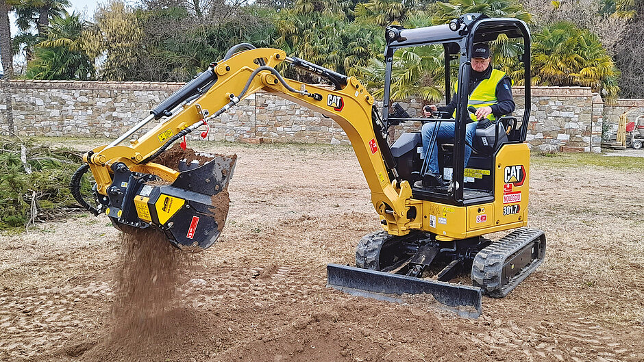 Die Form der beiden Neuheiten erinnert vielmehr an einen gewöhnlichen Tieflöffel, wohlwissend, dass sich dahinter weit mehr verbirgt: Der neue Schaufelseparator MB-HDS207 ist auf Minibagger im Segment von 1,3 t bis 2,8 t ausgelegt, während das Modell MB-HDS212 sowohl Midibagger von 5 t bis 10 t als auch Baggerlader mit 8 t bis 9 t und Lader von 4 t bis 5 t bedienen kann. Als »klein, aber fein« beschrieben, sollen die beiden Ausführungen mit ihrer kompakten Bauweise mit dennoch hoher Produktivität auffallen. »Beide Modelle«, so ein Statement des Herstellers, »zeichnen sich durch eine neue Geometrie aus – ausgelegt auf eine einfache Handhabung sowie die Nutzung auf kleinen Baustellen.« Das Einsatzspektrum reicht laut des italienischen Brecher- und Sieblöffelspezialisten vom klassischen Gartenbau bis zum Baugewerbe. So sind die Separatoren beispielsweise dazu in der Lage, verdichteten Boden zu belüften, ihn aufzubereiten, von verschiedenen Abbruchmaterialien zu befreien oder Material für die Verfüllung von Rohrleitungen und Gräben zu sieben. Damit das gelingt, so MB Crusher weiter, musste bei der Entwicklung beider Schaufelseparatoren ein langlebiges wie stabiles Grundprinzip her: Das Getriebe ist durch eine feste Struktur geschützt – die Zahnräder sind buchstäblich versiegelt, damit keinerlei Material eindringen kann. Zudem erfolgt die Schmierung zentral. Gleichzeitig wurden an den Seiten der Geräte geschweißte Schutzvorrichtungen angebracht, um die Bolzen sowie seitlichen Gehäuse zu schonen. Darüber hinaus wurde eine abgesenkte Kopplung verwendet: Die mittig angebrachte Anhängevorrichtung ist damit weit niedriger als die restliche Struktur, was einen geringeren Verschleiß des Rahmens, größere Manövrierfähigkeit und bessere Kontrolle mit sich bringen soll.