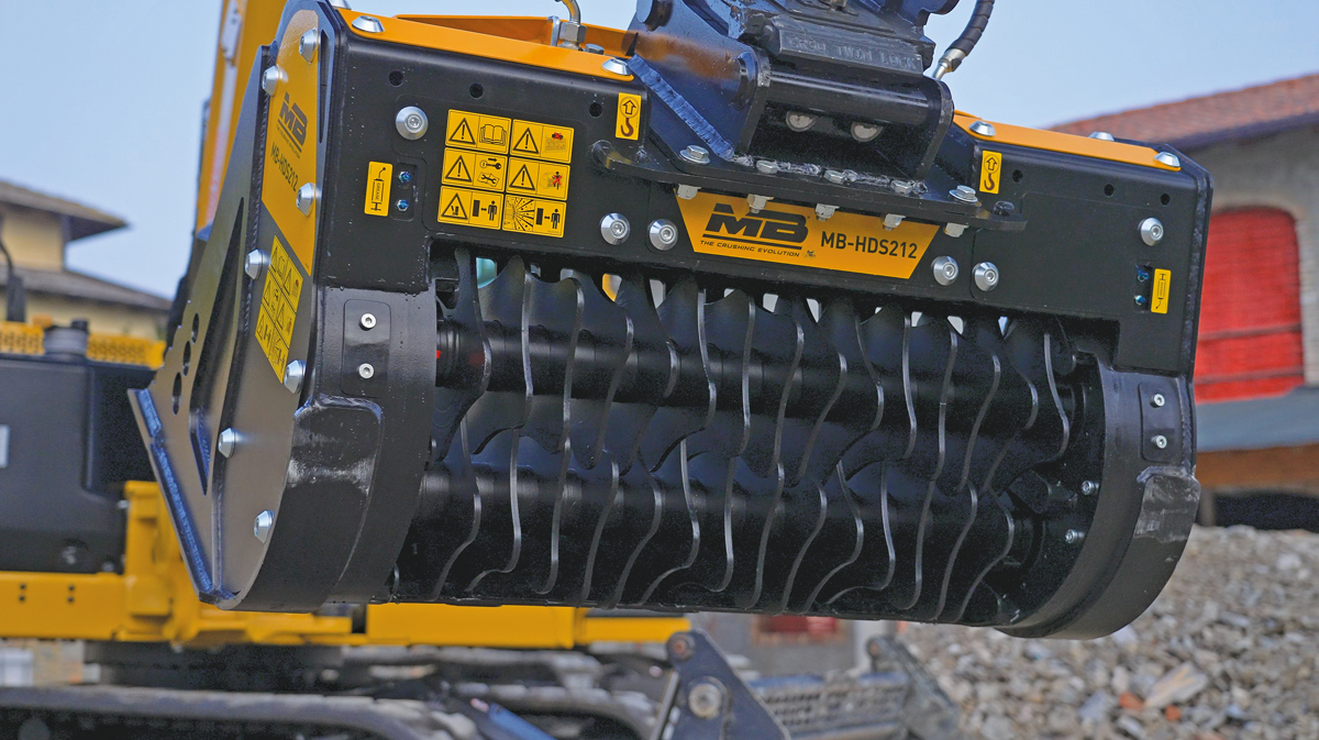 Um die Leistungsfähigkeit unter Beweis zu stellen, hatte das italienische Unternehmen den HDS207 und dessen größeren Bruder HDS212 bereits im Vorfeld auf einer Baustelle in Aquileia in der italienischen Provinz Udine getestet. Auffällig war, dass sich die Wellen direkt auf der Baustelle und damit direkt am Einsatzort wechseln lassen. Zusätzlich zur vereinfachten Wartung sind die Modelle mit Wellenträger ausgerüstet. Hervorheben wollte MB Crusher in diesem Zusammenhang ebenso, dass für den MB-HDS207 ein Kit zur Erhöhung des Ladevolumens von 50 l auf 60 l erhältlich ist. Das Modell MB-HDS212 hingegen ist auch für Kompaktlader geeignet und seine Seiten sind so konzipiert, dass das Material besser zu den Wellen gleiten kann. Um beide Modelle noch vielseitiger einsetzen zu können, hat MB Crusher ein umfangreiches Zubehörprogramm auf den Weg gebracht. Dazu zählen das Ersatzteil-Kit »Wellenträger« für sichere Lagerung und Transport, das Mischwellen-Kit »RM« zur Boden- und Kompostierbelüftung sowie das Siebwellen-Kit RQ15 mit Quadratscheiben zur Bödenbelüftung. Nur für den HDS212 verfügbar sind zudem das Wellen-Kit »Kompostierung RC« mit Kreuzscheiben zur Zerkleinerung von Laub, Zweigen und Ästen, das Siebwellen-Kit »Fein RE8/RE16« mit Hexagon-Scheiben zum Sieben von feuchter und trockener Erde sowie die Siebwellen-Kits RQ20/RQ50 mit Quadratscheiben zum Sieben und Bodenbelüften. d