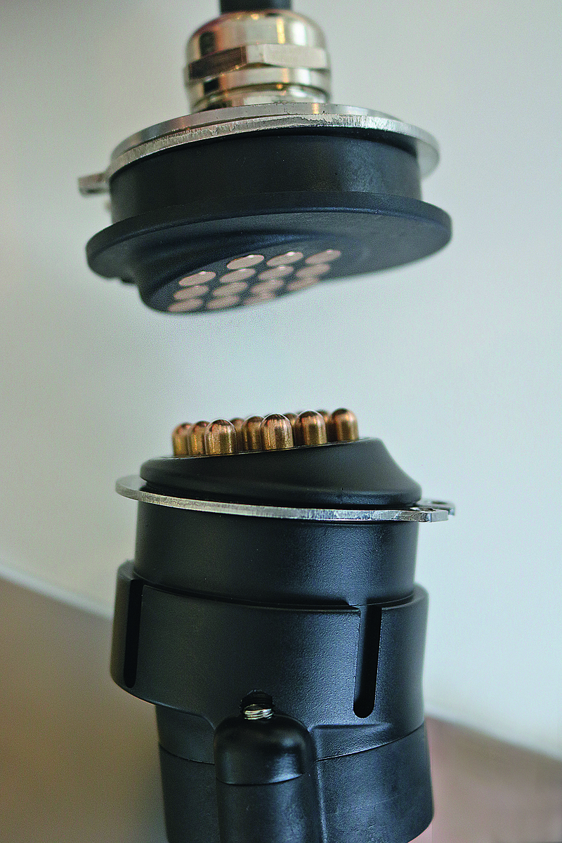 Bei den aktuellen Elektrosteckern kann es zu Einschränkungen bei der Belegung sowie zu Problemen wegen der kleinen Kontaktflächen oder ihrer Anfälligkeit gegenüber Schmutz und Wasser kommen. Aus diesem Grund hat Steelwrist einen robusten Elektrostecker V14 entwickelt, der speziell für den Einsatz bei vollhydraulischen SQ-Schnellwechslern und -Anbaugeräten geeignet ist.