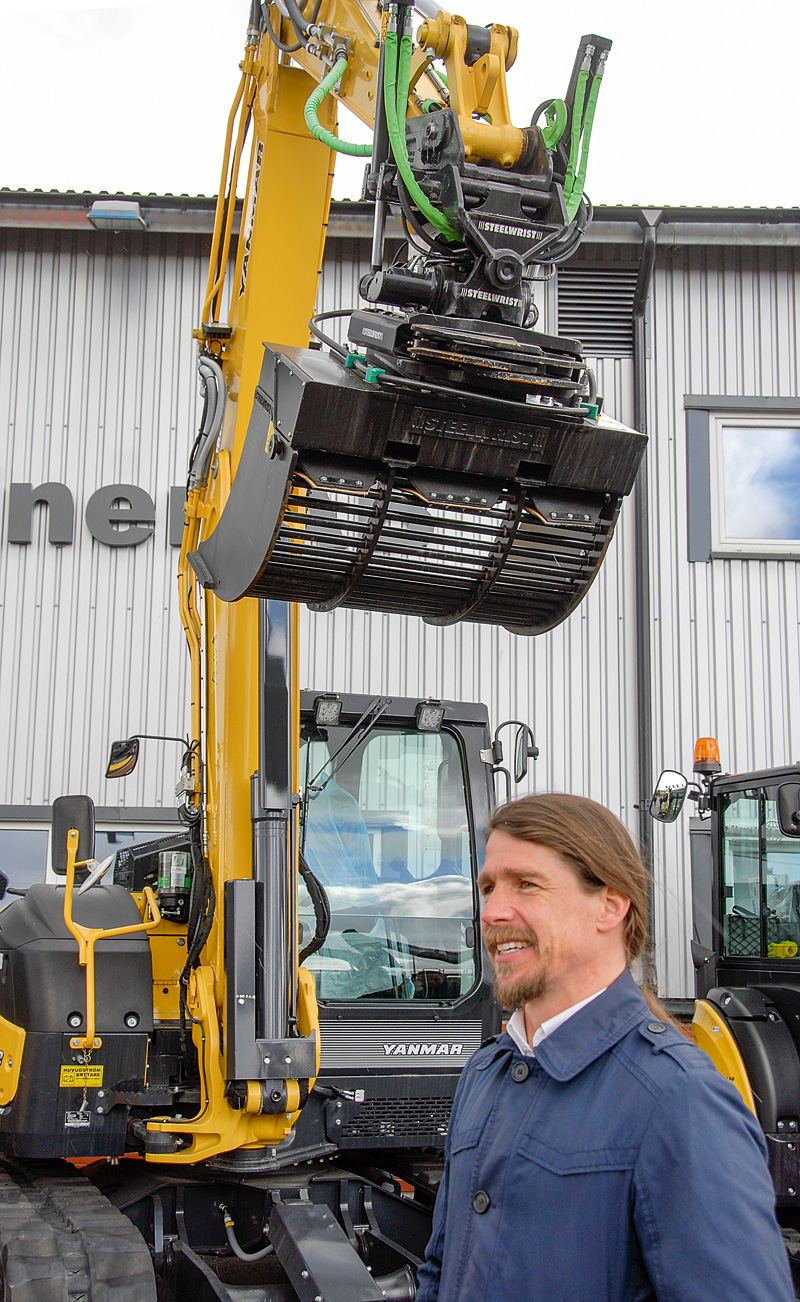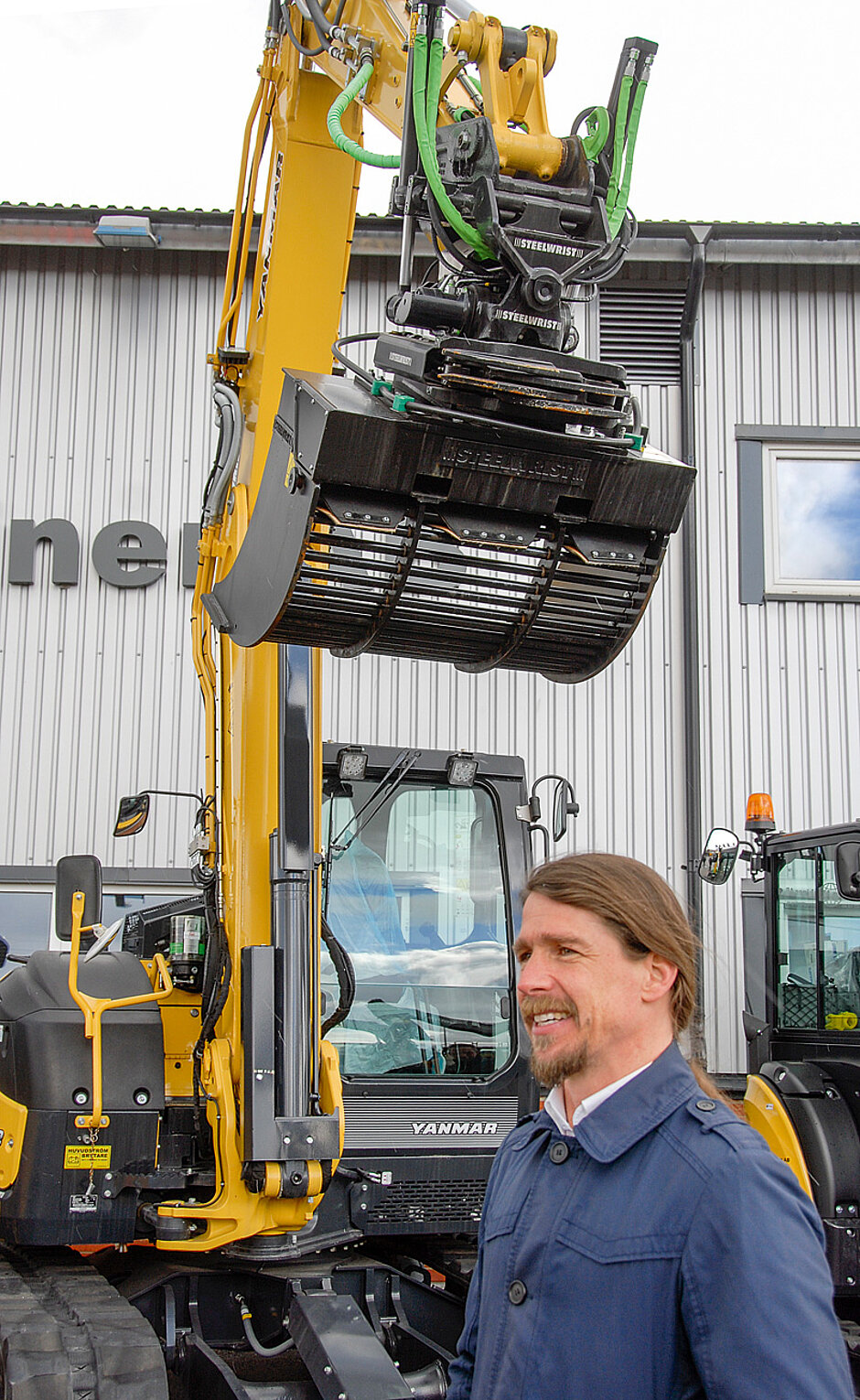 Steelwrist informiert auf der Intermat ebenso über die im letzten Jahr eingeführte Verbindung von Powertilt-Schwenkmotoren mit Schnellwechslern von Steelwrist samt spezieller Front-Pin-Lock-Technologie.