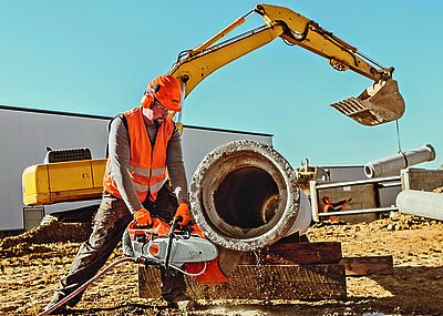 Der TS 440 ist speziell für Trennaufgaben an Versorgungsrohren geeignet – ob aus Beton, Metall, Guss oder Stein. Die Neuheit, kann aber auch für viele Trennaufgaben auf der Baustelle effizient eingesetzt werden. Der erweiterte Schutzverstellung lässt sich so verstellen, dass die Trennscheibe des TS 440 im oberen Bereich zugänglich ist. Dadurch wird sowohl die Schnittführung beim Trennen von Rohren, speziell an deren Unterseite, in Ecken und bei Wandschnitten, als auch das Arbeiten unter beengten Platzverhältnissen deutlich erleichtert. Die Weltneuheit Stihl-QuickStop-Trennscheibenbremse unterstützt den Bediener bei geöffnetem Scheibenschutz. Kommt es zu einem ausreichend starken Rückschlag, wird die Trennscheibe sensorgesteuert im Bruchteil einer Sekunde gestoppt.