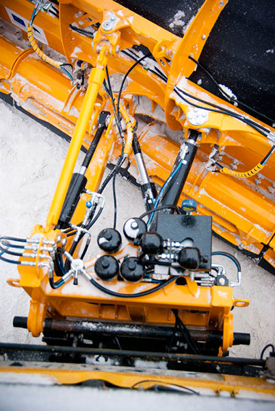 Der Pflug verfügt über ein druckverstellbares hydraulisches Zusatz-Leisten-System. Abhängig von der Schneelage lässt sich der Druck auf die Vorder- oder Hinterleiste einstellen. Wird beispielsweise bei zusammengepresstem Schnee der Druck auf die vordere Leiste gelegt, lässt sich der harte Schnee wegschürfen. Bei Tauwetter kann man den Druck auf die hintere, sogenannte Matschleiste legen, die wie ein Scheibenwischer Nassschnee von der Fahrbahn schiebt.Jede Leistensektion besitzt einen eigenen Zylinder, um den gleichen Betriebsdruck auf dem gesamten Umfang der Leisten zu gewährleisten. Dank Easy-Fix-System lassen sich die Leisten binnen fünf bis zehn Minuten wechseln oder regulieren. Das leicht einstellbare Druck-Verstellsystem soll auch den Verschleiß der Vorderleisten verringern. Die Zusatzleisten sind aus veschleißfestem Polyurethan gefertigt.