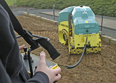 Für diese Arbeiten stellt Ammann Verdichtung die entsprechenden Maschinen zur Verfügung: Die beiden größten Fertiger AFT 350 und AFT 500 waren optimal dafür geeignet, auf Breiten von bis zu vier Meter zu arbeiten. Kongenialer Partner der Fertiger ist die Walze, denn im Normalfall fährt die Walze immer kurz hinter dem Fertiger her, um den Asphalt bei hohen Temperaturen fachgerecht zu verdichten. Hier kam für die großen und breiten Bereiche eine ARP 95 zum Einsatz; in den Randbereichen, an Ecken und beim Übergang zu den Gehwegen setzten die Arbeiter um Bauleiter Heinz Straken eine Tandemwalze ARX 16 ein.