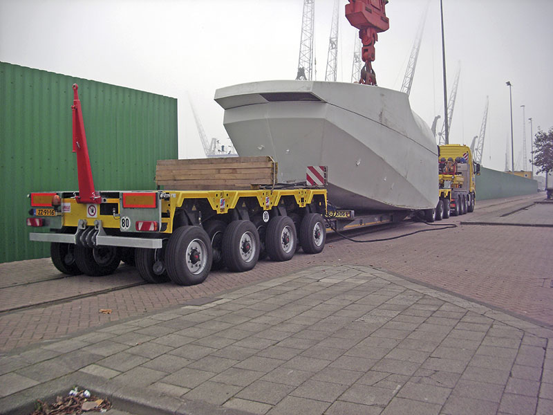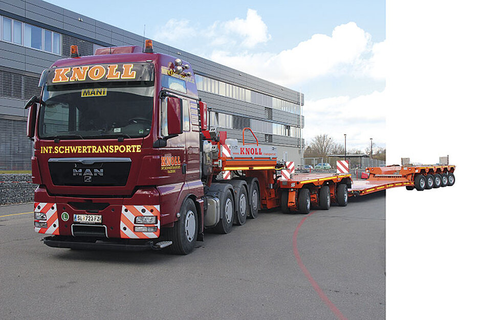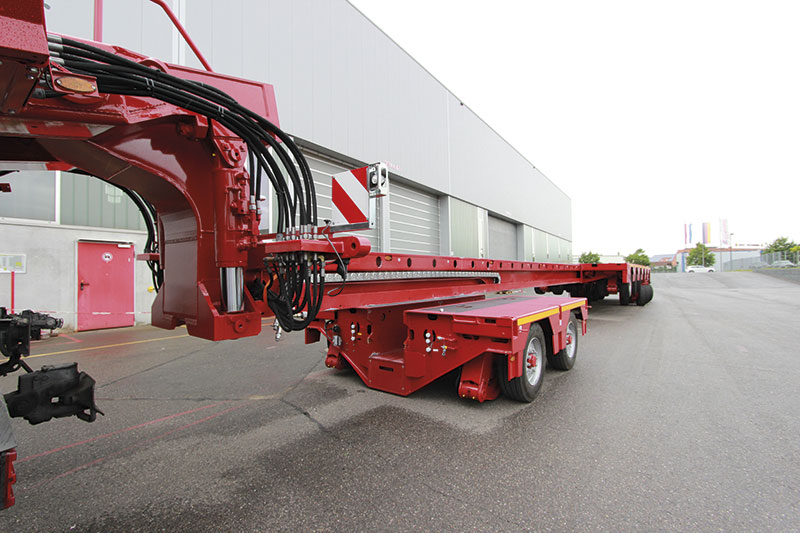 Der EuroCompact von Scheuerle und Nicolas soll beispielsweise Maßstäbe in puncto minimaler Gesamtzuglänge, maximaler Ladelänge und optimaler Nutzlast setzen. Die ausgeprägte Tieflastmulde prädestiniert das Fahrzeug für den Transport von Baumaschinen. Wie der Name schon sagt, sind alle Komponenten besonders kompakt konstruiert, was – zusammen mit einem Lenkwinkel von 65° und dem nach Anbieterangaben geringsten Leergewicht seiner Klasse – das Fahrzeug sehr wendig macht. Auch die Standsicherheit bei hohen Schwerpunkten wurde so verbessert. Eine breite Zubehörpalette soll den EuroCompact zum vielseitigen Allrounder machen, wenn es um den Transport von Baumaschinen geht.
