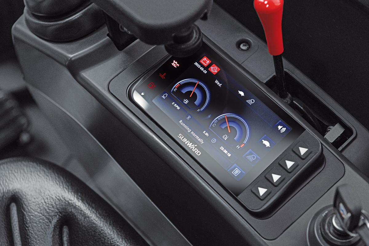 Sunward bietet sein Geolokalisierungssystem »Sunward Smart Fleet« optional an. Das System ermöglicht die Lokalisierung sowie das ferngesteuerte Anhalten der Maschine. t