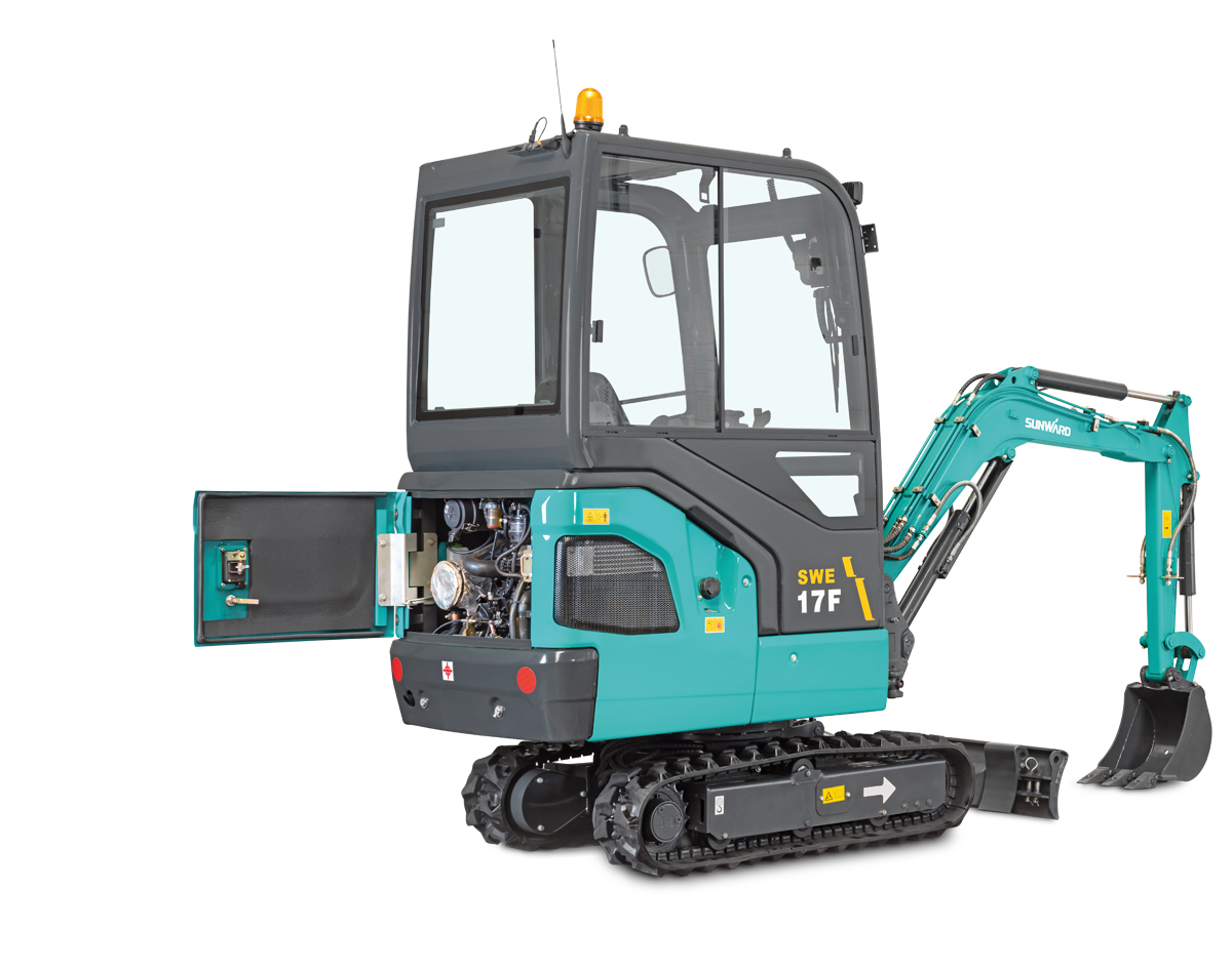 Mit Einführung des SWE 17F bietet Sunward sieben verschiedene Modelle im Segment von 0,8 t bis 3,5 t für den europäischen Markt an. Der Motor des SWE 17F entspricht der EU-Abgasstufe V, gleiches gilt laut Anbieter für den Rest der Modellreihe. In puncto Antriebsaggregat entschied sich Sunward beim neuen 1,7-t-Minibagger erneut für Yanmar und dessen Motor 3TNV80-SSSU. Der 3-Zylinder-Motor aus Yanmars TNV-Serie wird bei Sunward bereits in den Modellen SWE 18UF und 20F eingesetzt. Er soll zu einem zuverlässigen, komfortablen und effizienten Betrieb beitragen, indem er einen geringen Kraftstoffverbrauch mit niedrigen Lärm- und Vibrationswerten kombiniert. Der Motor liefert eine Nettoleistung von 13,4 kW bei einem Betriebsgewicht der Maschine von 1 640 kg (Canopy-) bis 1 780 kg (Kabinenversion).