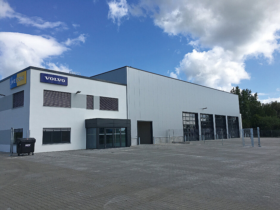»Platztechnisch haben wir uns sehr verbessert, unsere Muttergesellschaft, die schwedische Lantmännen Holding, hat uns insgesamt 10 000 m2 Grundstücksfläche zur Verfügung gestellt. Die Mitarbeiter können 640 m2 Bürofläche und 961 m2 Hallengrundfläche nutzen und der größtmögliche Anteil des Geländes ist gepflastert, um möglichst viel Stellfläche für Maschinen und Material zu erhalten«, berichtet Swecon-Geschäftsführer Falk Bösche. Der Neubau bringt für die Service-Organisation vor Ort zahlreiche Verbesserungen mit sich: Drei Montageboxen mit jeweils individueller Abgas-Absauganlage stehen zur Verfügung, sodass sechs Großmaschinen parallel gewartet oder repariert werden können. Unter einem Vordach ist ein zusätzlicher Platz für Wartungen und Reparaturen vorhanden. In der Wartungshalle kann ein Montagekran flexibel eingesetzt werden und eine innenliegende, wetterunabhängige und beheizte Waschhalle macht die Arbeiten an den Maschinen auch im Winter flexibel. »Unseren Mitarbeitern steht in der Werkstatt eine moderne und komfortable Arbeitsumgebung zur Verfügung und unseren Kunden können wir durch die größere Anzahl an Maschinen, die gleichzeitig bearbeitet werden kann, kürzere Servicezeiten anbieten«, so Kundendienstleiter Frank Enders. t