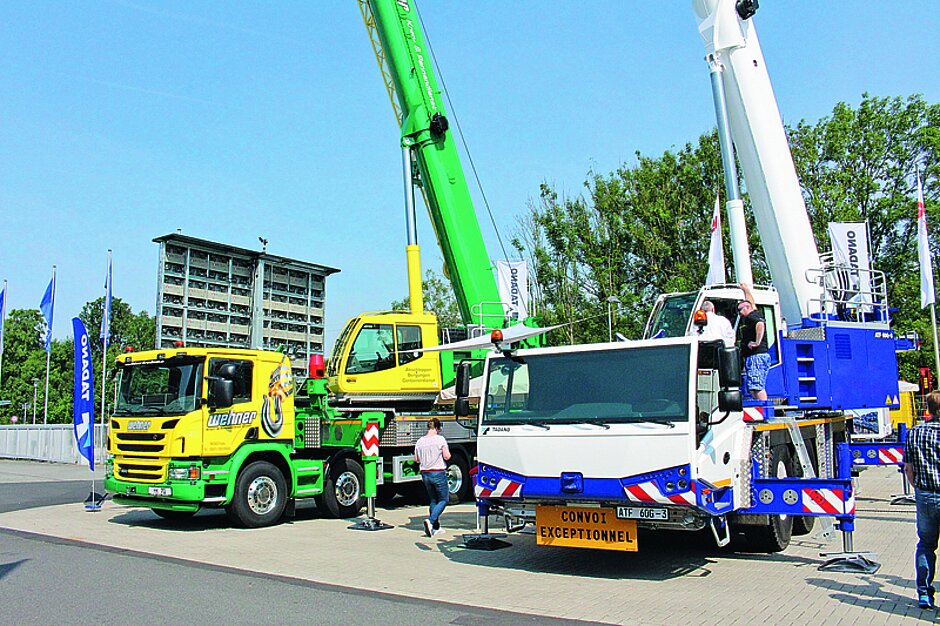 Auf der wichtigsten britischen Fachmesse Vertical Days im englischen Donington Park wusste der neue Kran Mitte Mai ebenso zu überzeugen. Auch auf den Britischen Inseln kommt es bei einem 60-t-Kran auf möglichst vielfältige Einsatzmöglichkeiten an.