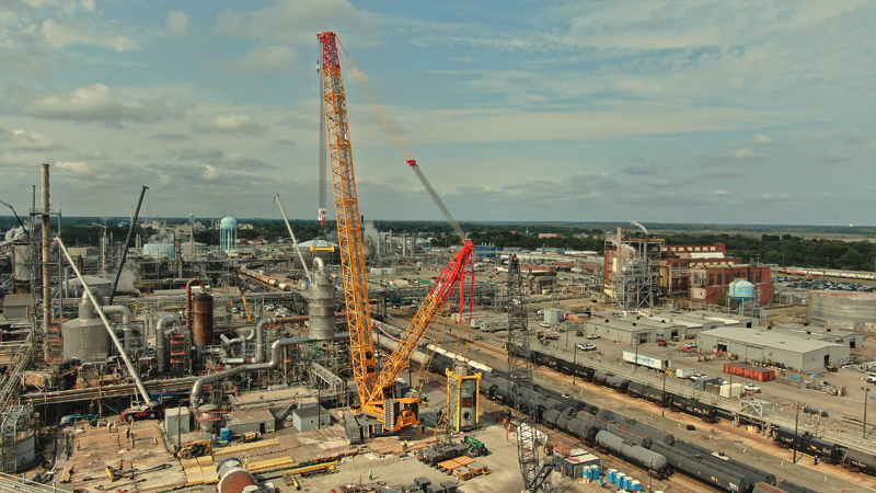Der Auftrag bestand darin, für ein Unternehmen der Petrochemie mehrere 308 t schwere Behälter herauszuheben und durch neue zu ersetzen. Jedes Projektdetail verlangte eine sorgfältige Planung mit anschließender fehlerfreier Durchführung. »Der Kran musste auf der beengten Baustelle bewegt werden. Wir mussten einen Sockel für den Kran bauen, damit das Gegengewicht über das Gebäude hinweg schwenken konnte. Insgesamt nahm die Planung der Hübe fast acht Monate in Anspruch«, erklärt Everett.