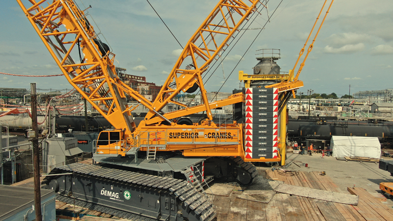 Obwohl wir mit dem Demag AC 1000-9 über einen All-Terrain-Kran der 1 200-t-Klasse verfügen, gab es 2018 gleich drei Ausschreibungen, an denen wir nicht teilnehmen konnten, weil dort die Nutzung eines All-Terrain-Krans nicht möglich war«, erinnert sich Joe Everett. »Folglich brauchten wir einen Raupenkran mit einer vergleichbaren Tragfähigkeit, damit uns nicht weitere Chancen durch die Lappen gingen.« Entsprechend investierte Superior Cranes in einen Demag- Gittermast-Raupenkran des Typs CC 6800-1. Der Kauf war zeitkritisch, da eine Ausschreibung für einen Auftrag einer petrochemischen Anlage in Virginia eine Tragfähigkeit erforderte, die nur der CC 6800-1 bieten konnte. »Vor der Anschaffung des 1 250-t-Krans hätten wir diesen Auftrag nicht übernehmen können«, ergänzt Everett.