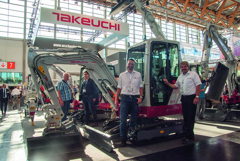 Grundsätzlich allerdings sieht er ein »unheimlich großes Potenzial« für elektrisch angetriebene Bagger, vor allem in bestimmten Anwendungsbereichen oder auch weil staatliche Auflagen deren Einsatz vorschreiben. Mit seinen derzeit vier Hybrid-Modellen, die sowohl über einen Diesel- als auch über einen Elektromotor verfügen, sieht er Takeuchi in diesem Bereich gut positioniert. Großes Potenzial sieht er auch für die beiden neu vorgestellten Bagger. So biete der TB 2150 (siehe auch Kasten auf dieser Seite), mit einem Einsatzgewicht von 16 t der größte Takeuchi-Bagger überhaupt, drei verschiedene Auslegerkonzepte. »Das ist einzigartig für einen Bagger mit diesem Einsatzgewicht«, so Marko Schwarz, »denn nicht einmal die großen Hersteller bieten das in dieser Gewichtsklasse an.« Gleichwohl sei mit dem TB 2150 so etwas wie das »Ende der Fahnenstange« erreicht. »Es wird keine Erweiterung des Produktportfolios mit einem noch größeren Bagger geben«, so Schwarz, für den in diesem Fall das alte deutsche Sprichwort zählt: »Schuster, bleib bei deinen Leisten.«