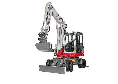 Der Takeuchi »TB 320« kann mit Zusatzgeräten, die einen Bagger deutlich flexibler machen, ausgerüstet werden. Dazu gehört z. B. ein Powertilt. Der Schwenkmotor kann das Anbaugerät jeweils um bis zu 90° nach links bzw. rechts schwenken. Mit der serienmäßigen Powertilt-Umschaltung kann man den Schwenkmotor proportional bedienen oder eine der beiden Greiferfunktionen ansteuern. Ein Tiltrotator kann das Anbaugerät um 360° endlos drehen. Mit diesen Unterstützungen macht man aus einem Bagger eine hochflexible Arbeitsmaschine, die große Einsatzbandbreiten abdeckt. In vielen Arbeitssituationen muss der Bagger dann nicht mehr bewegt werden, um in eine gute Position zu kommen. Drehen und Schwenken des Löffels, Hammers oder Greifers verschafft die richtige Arbeitsposition. Zudem braucht der Fahrer zum Gerätewechsel die Kabine nicht mehr oder nur kurz verlassen. Der Takeuchi »TB 320« ist grundsolide gebaut. Zum Beispiel sind die Hauben aus Stahlblech und der Schwenkbock und die Buchsen aus Stahlguss. Dreiflanschige Laufwerksrollen mit hochwertigen Laufwerkskomponenten sind die dauerhafte Basis, auf der sich der Bagger bewegt. Durch massive Abdeckung im Schwenkbockbereich sind überdies die Schlauchleitungen gut geschützt. Die Verarbeitung insgesamt zeugt ebenso von Solidität.d