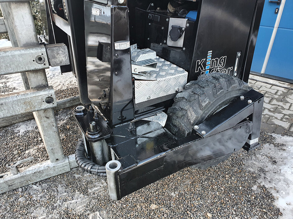 Aus einem Kundenwunsch entstanden und entwickelt, werden bei der Tasbach GmbH seit einigen Jahren immer wieder Mitnahmestapler auf Klapparme umgebaut. Mitte 2020 wurde zum ersten Mal unter dem Namen Terberg Kinglifter eine Allrad Maschine inklusive hydraulischer Stützen und 23 Zoll Räder umgebaut.
