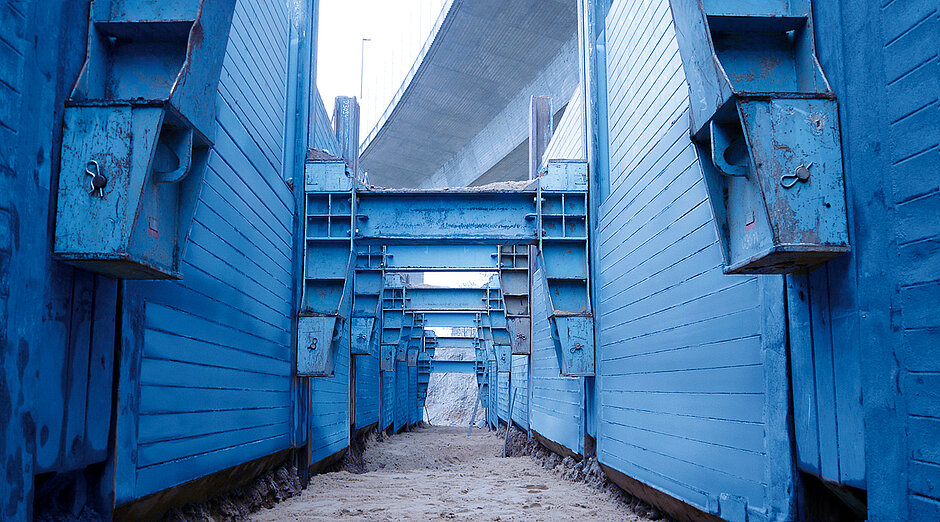 Ob es der E+S Linear- und Boxenverbau für anspruchsvolle Baumaßnahmen mit sehr großen und breiten Baugruben ist oder ein vielseitig einsetzbares Boxensystem von Krings, das für Lagerung und Transport nur wenig Platz in Anspruch nimmt: Für jeden Einsatzzweck lasse sich die entsprechende wirtschaftlich und verfahrenstechnisch optimale Lösung finden. Innerhalb der Produktpalette von terra infrastructure ragt vor allem das Linearverbausystem heraus. Der E+S-Linearverbau ist laut Hersteller ein weltweit einmaliges Verfahren, bei dem biegesteife Laufwagen die Träger und damit die Verbauplatten auf Distanz halten. Alles läuft linear – immer im gleichen Abstand zur gegenüberliegenden Seite. Das sorge für effektiveres, schnelleres und spürbar wirtschaftlicheres Arbeiten. Ein wesentlicher Vorteil des Systems resultiere aus der speziellen Konstruktion des Trägers, die es ermöglicht, die Verbauplatten von der Seite einzuschwenken.