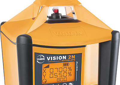 Die Align-Funktion ist im Horizontalbetrieb in zwei Achsen mit jeweils ± 15 % Neigung möglich. Durch die wählbare Rotationsgeschwindigkeit von bis zu 1 000 min⁻¹ ist der Vision 2N AS Align für den Einsatz mit Maschinenempfängern geeignet. Dies soll ihn zu einem perfekten Partner der zweiten Theis-Neuheit machen – dem Maschinenempfänger TBE 12N mit Neigungskompensation.
