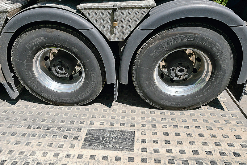 Nach Abwägung verschiedener Alternativen entschieden sich die Baupartner für den Einsatz der mobilen Kunststoffbaustraße aus dem Hause thyssenkrupp Infrastructure. Bei den Kunststoffelementen handelt es sich um Leichtgewichte, für An- und Abtransport sind keine Spezialfahrzeuge nötig. Ein Lkw kann je nach Größe bis zu 75 Platten transportieren. »Entsprechend niedrig sind die Transportkosten«, erklärt Nicole Wehrle, Produkt-Managerin für Baustraßensysteme bei thyssenkrupp Infrastructure. Die 3 000 mm x 2 400 mm x 45,5 mm großen Elemente bestehen aus Polyethylen und sind weitestgehend ohne vorherige Erdarbeiten verlegbar. Trotz relativ geringem Eigengewicht von rund 280 kg pro Platte beträgt die Traglast in Abhängigkeit vom Untergrund rund 160 t/m². Hinzu kommt: »Die Elemente sind einfach und schnell zu verlegen und sorgen für eine optimale Lastverteilung«, so Wehrle weiter. Ebenso erwähnenswert ist, dass die Elemente der Kunststoffbaustraße auf fast jedem Untergrund eingesetzt werden können. »So etwa zum Schutz des Untergrunds bei temporären Baustellenzufahrten«, wie Matthias Schel, Fachberater bei thyssenkrupp Infrastructure, ergänzt. Ebenso eignet sich die Kunststoffbaustraße als Wegeverbreiterung oder Lagerfläche, wie als Kran- und Montageplattform. t
