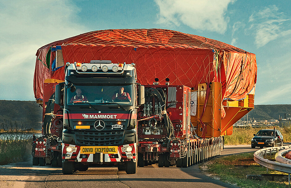 Der experimentelle Kernfusionsreaktor ITER (International Thermonuclear Experimental Reactor) soll nach seiner Fertigstellung im Jahr 2025 demonstrieren, wie sich mithilfe der Kernfusion Strom erzeugen lässt. Als wegweisend gilt, wie das niederländische Unternehmen Mammoet, der nach eigenen Angaben weltgrößte Dienstleister im Bereich technische Hebe- und Transportlösungen, zwei je 430 t schwere Bauteile des Reaktors vom Hafen in Marseille über eine Strecke von mehr als 100 km durch Südfrankreich transportiert hat.